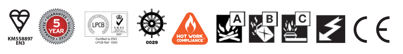 Squeeze grip operation Corrosion resistant finish Internal polyethylene lining Foam spray nozzle Supplied with fixing bracket Purchase Orders only = Survey, Installation & Service Applies - Contact Us for your FREE Quotation. Call: 0800 999 8595 or email: info@mgfiresafetygroup.co.uk to discuss further.